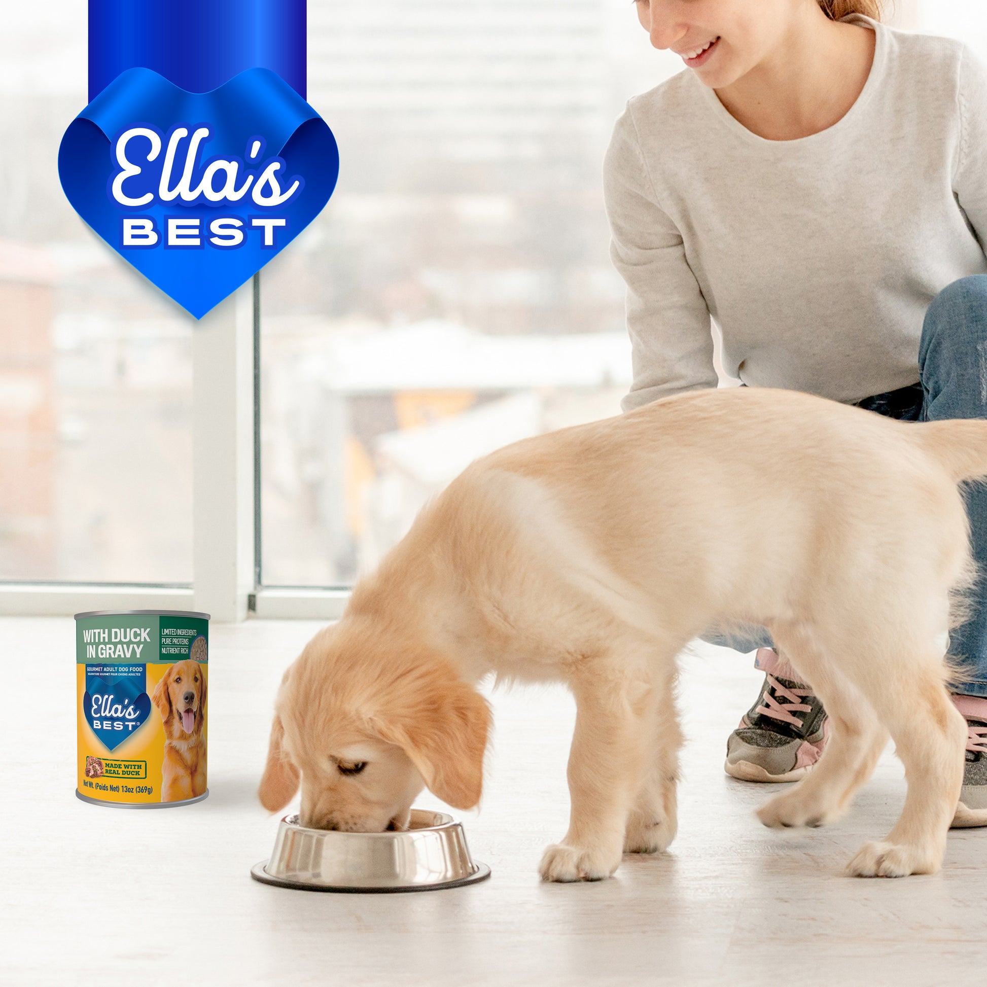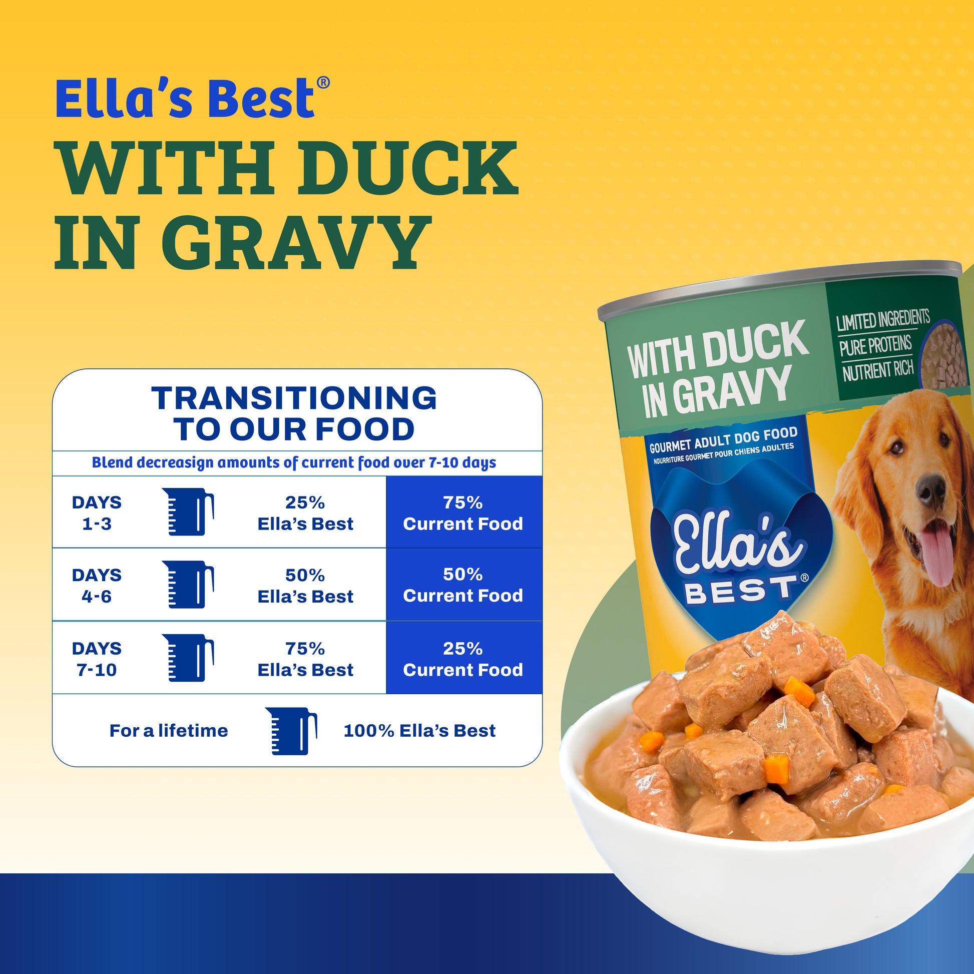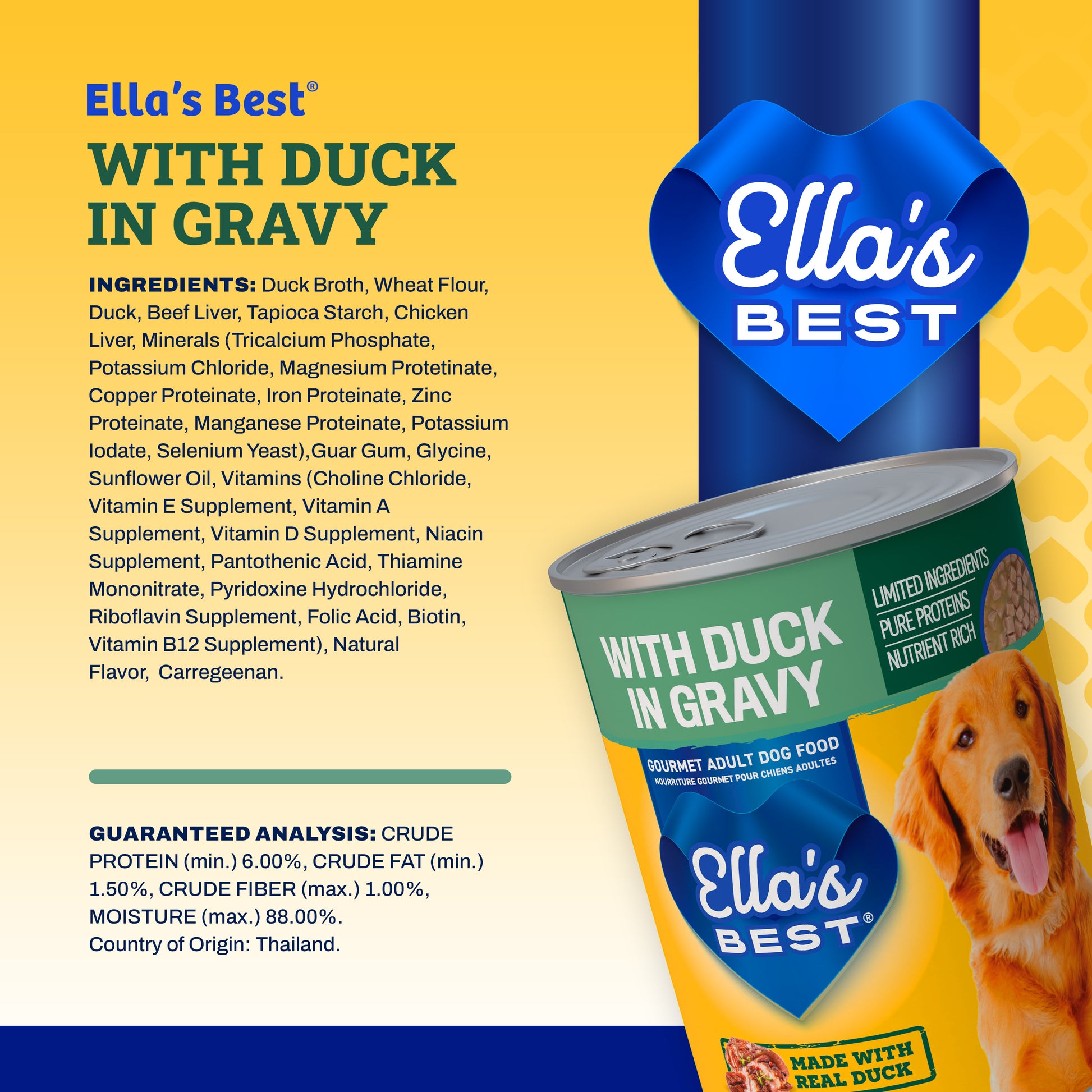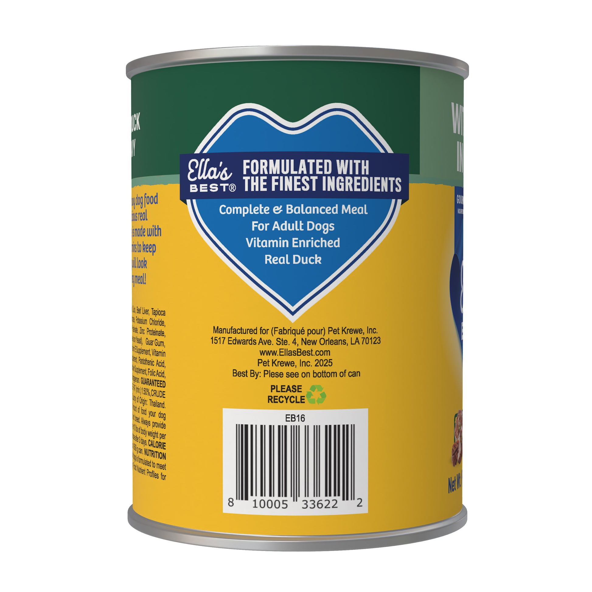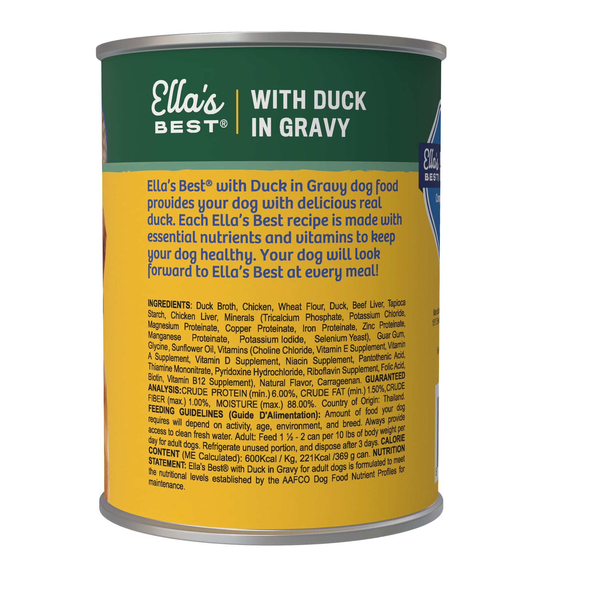 Give your dog a rich, flavorful meal with Ella’s Best with Duck in Gravy Wet Dog Food – 13oz. Made with real duck and chicken, this protein-packed recipe is slow-cooked in a nutrient-rich duck broth, providing a delicious and hydrating meal filled with essential vitamins, minerals, and amino acids. The tender texture and savory gravy make it a perfect choice for all breeds, while the high-quality protein blend supports muscle strength and overall vitality.