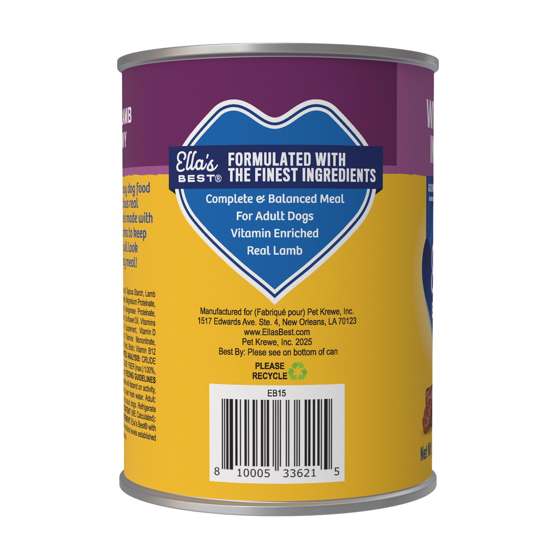 Give your dog a nutrient-rich, flavorful meal with Ella’s Best with Lamb in Gravy Wet Dog Food – 13 oz. Made with real lamb and chicken, this high-protein recipe is slow-cooked in a nutritious lamb broth, providing a delicious and hydrating meal packed with essential vitamins, minerals, and amino acids. The tender texture and savory gravy make it an irresistible choice for all breeds, while high-quality protein supports muscle maintenance and overall vitality.
