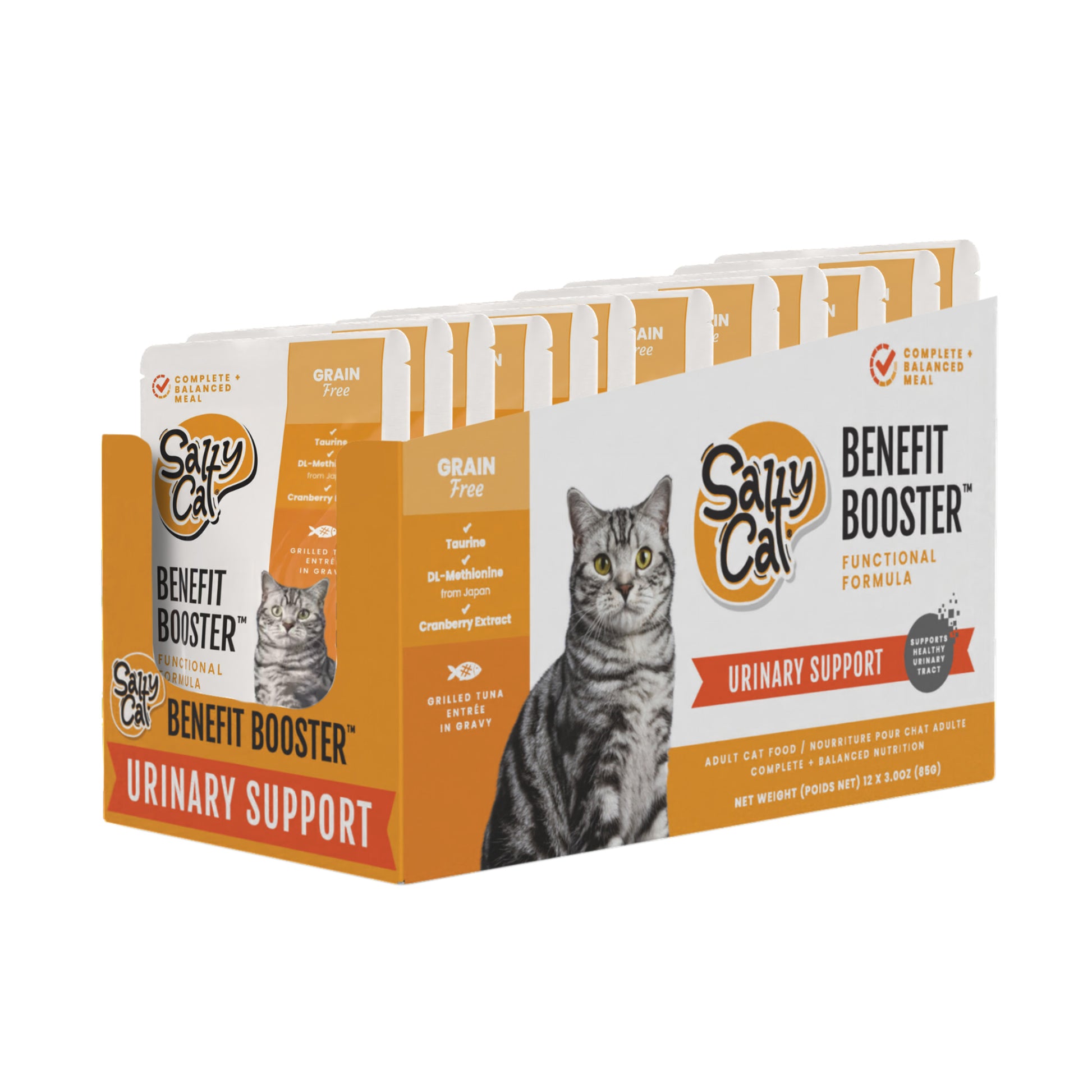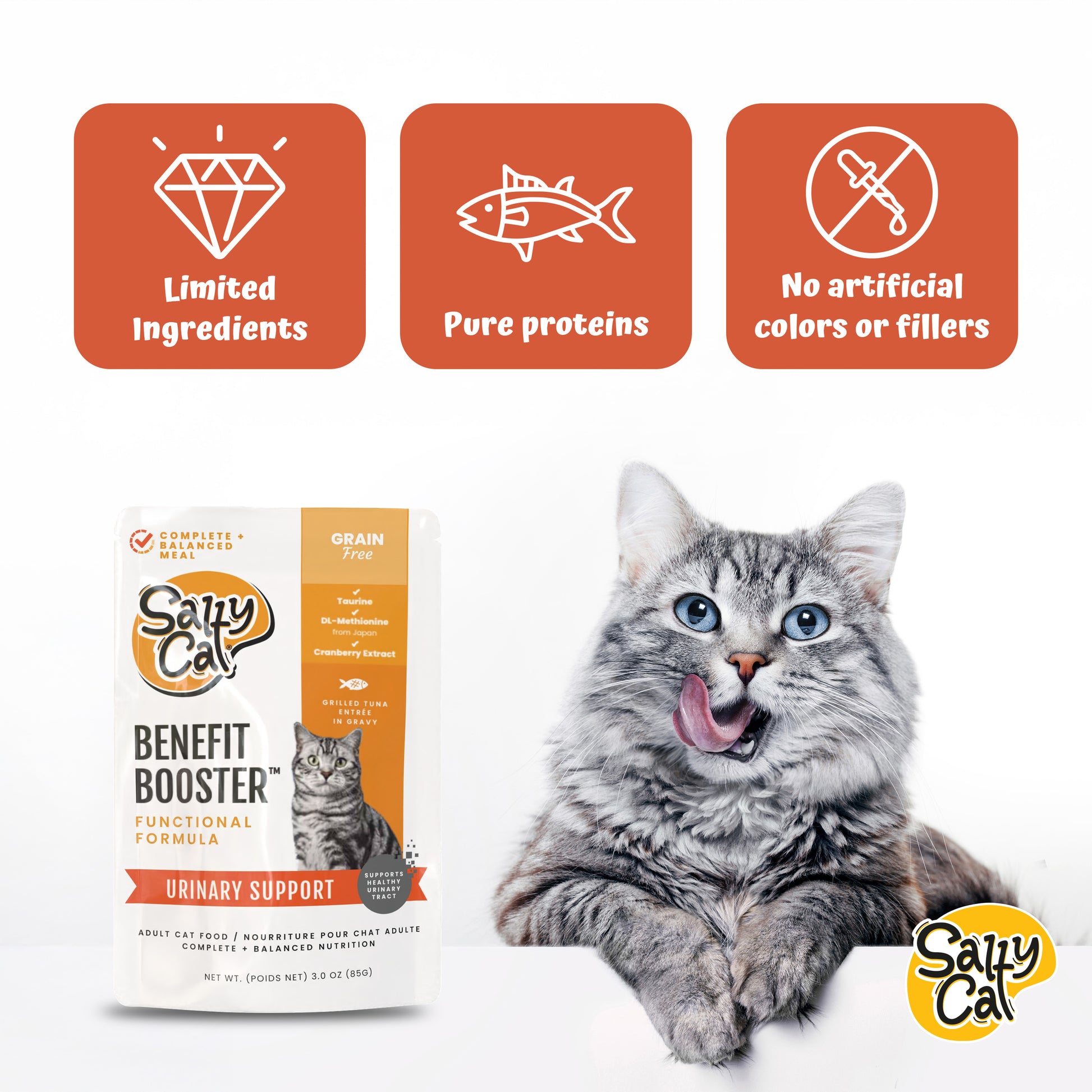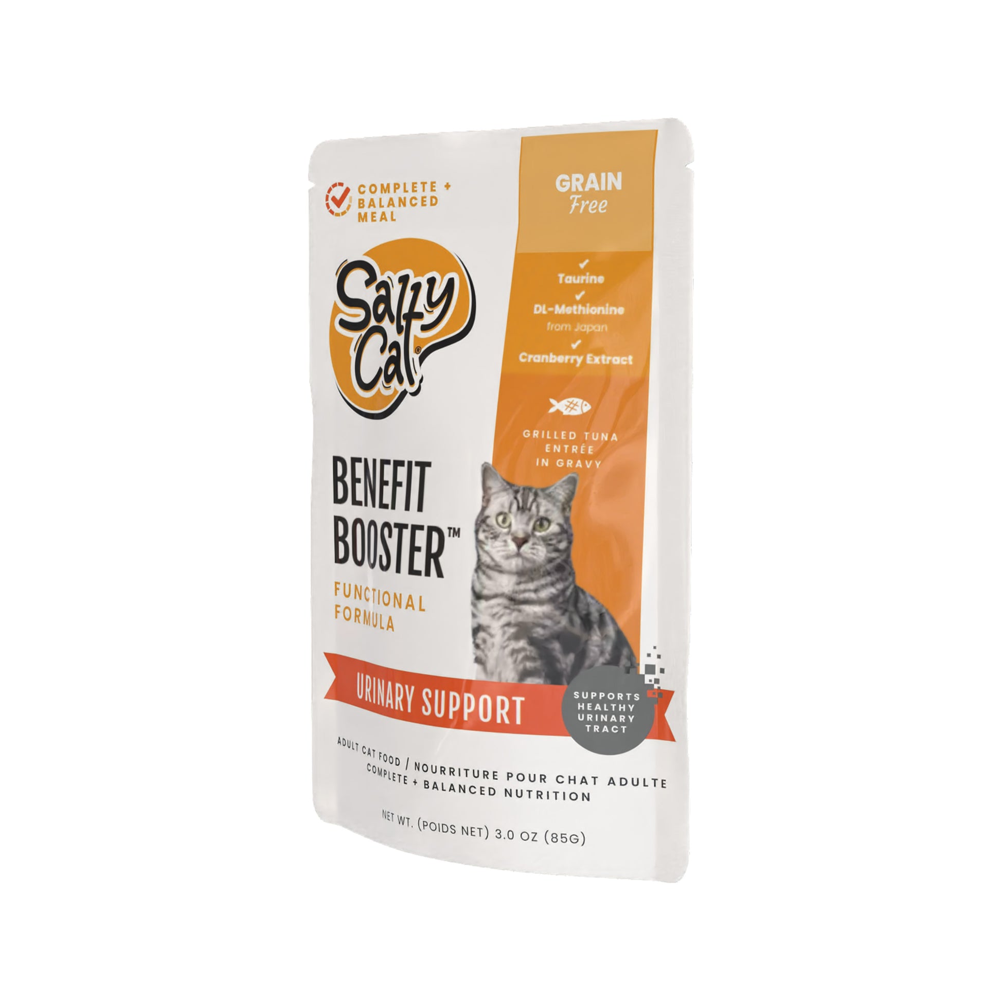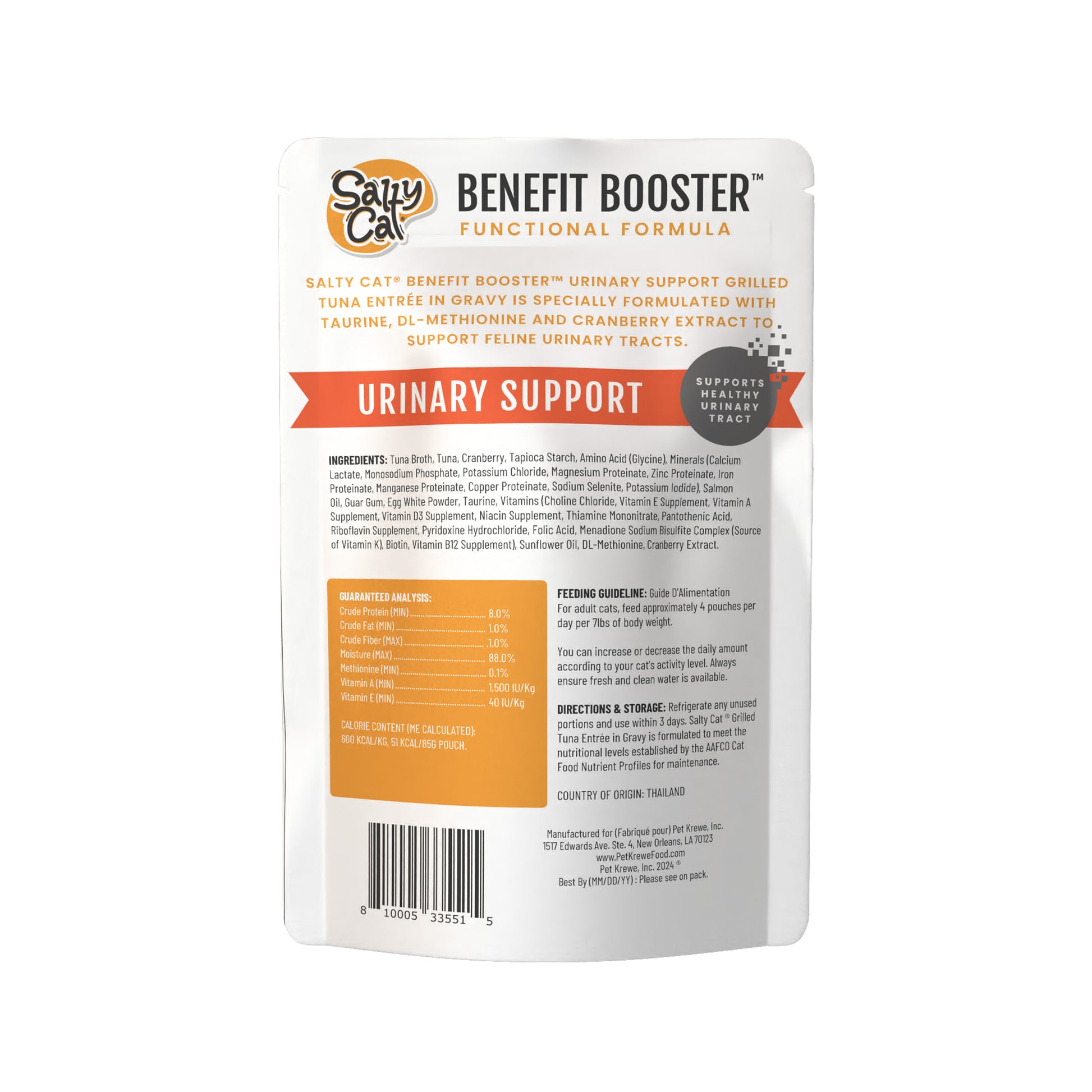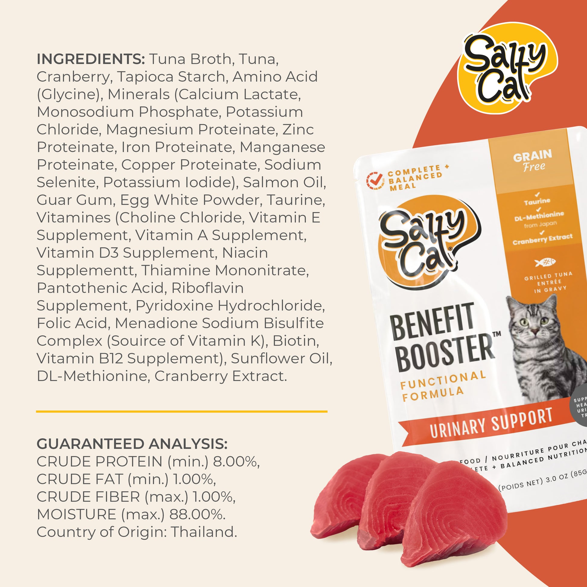 Salty Cat Benefit Booster Urinary Support Grilled Tuna Entrée in Gravy, 85g x 12 Pouches – Wet Cat Food with DL-Methionine & Cranberry Extract for Urinary Tract Health