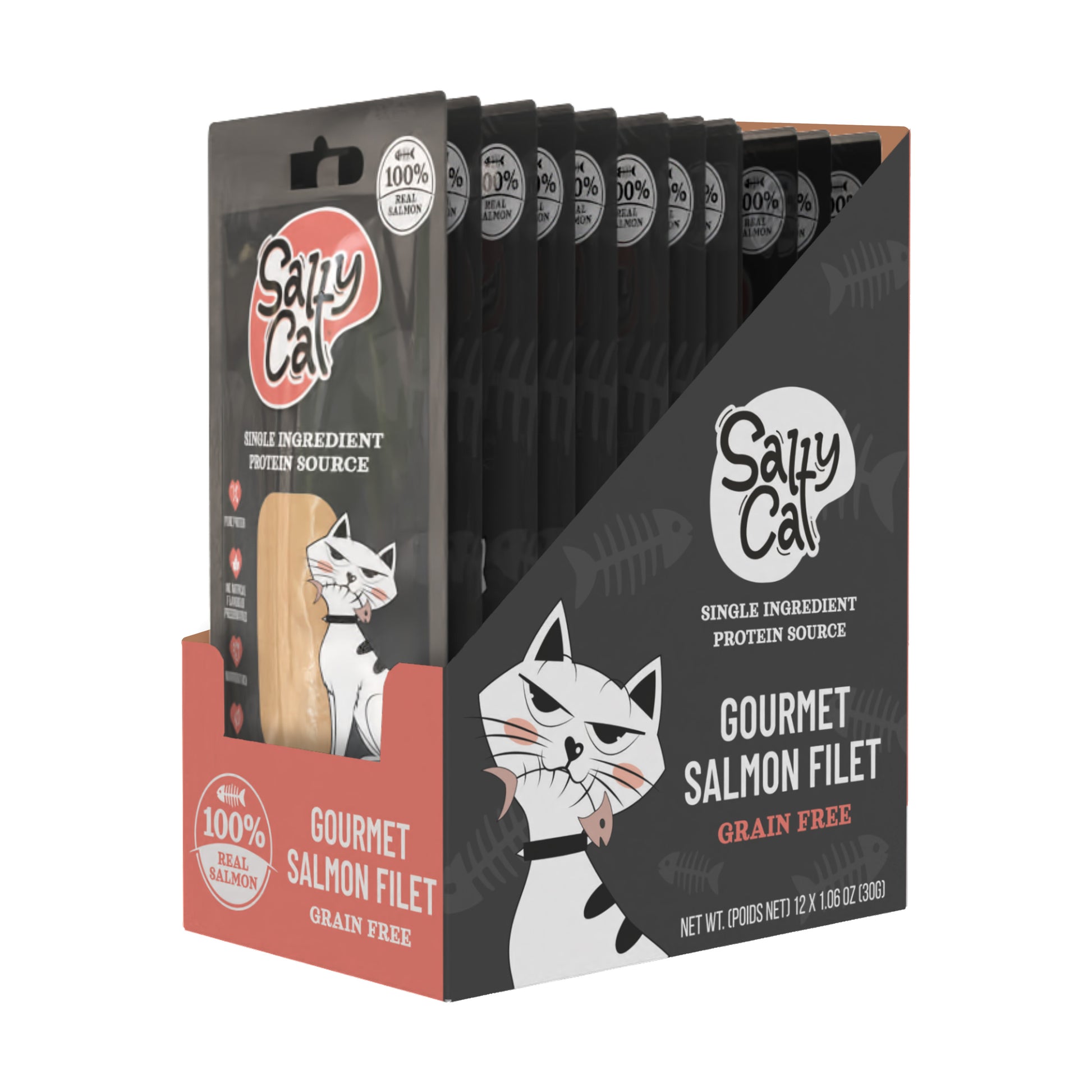 Salty Cat Gourmet Natural Salmon Filet Treats for Cats, 30g x 12 Pouches – Single-Ingredient, High-Protein Seafood Snack with Omega-3s
