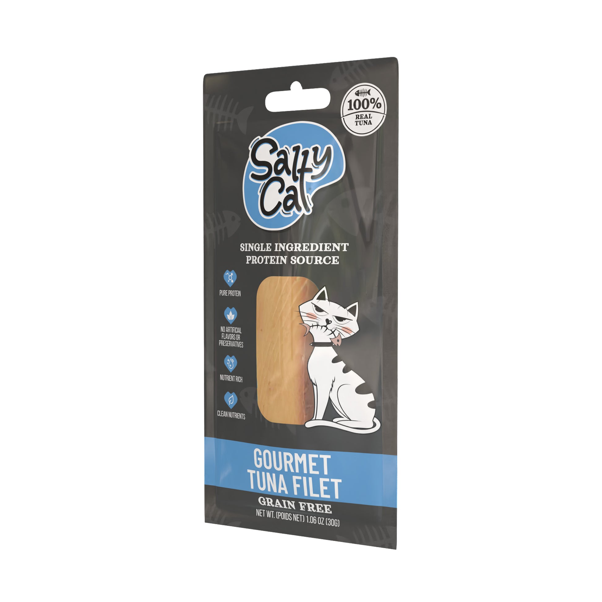 Salty Cat Gourmet Natural Tuna Filet Treats for Cats, 30g x 12 Pouches – Single-Ingredient, Wild-Caught Tuna Snack with Omega Fatty Acids