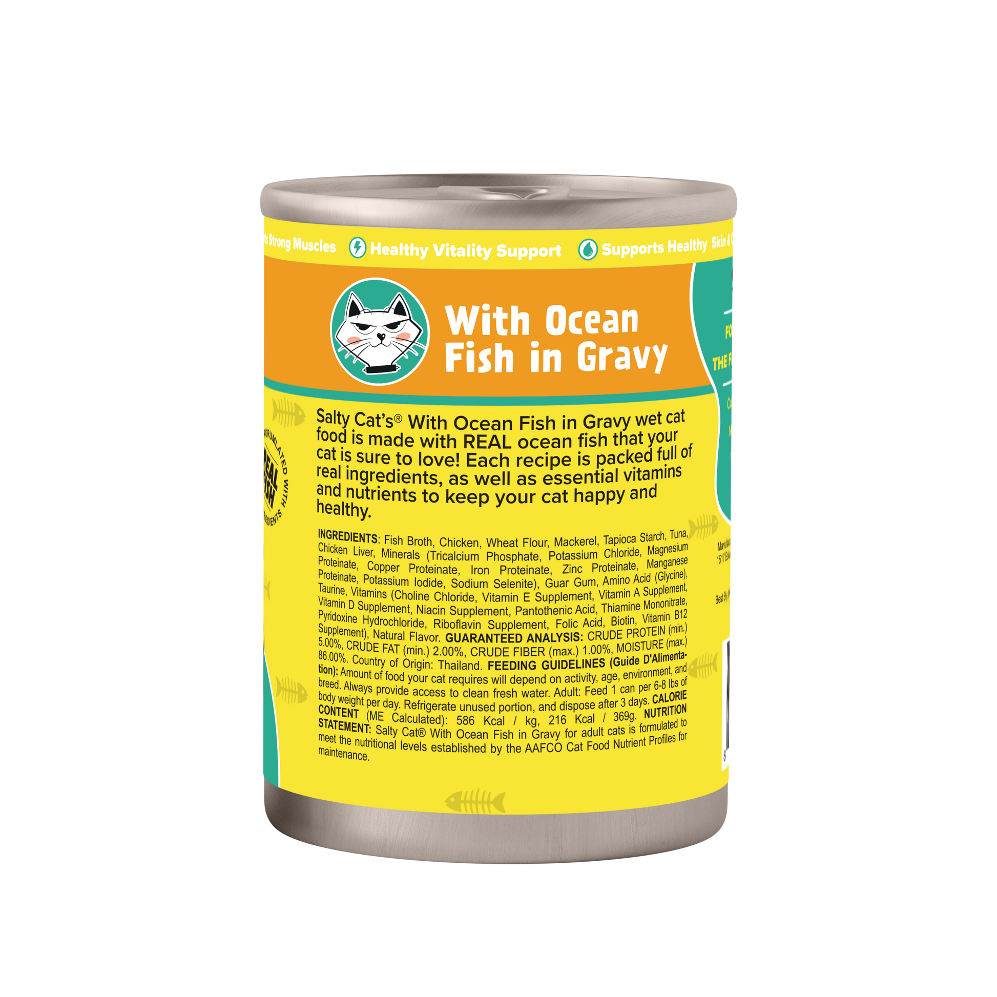 Treat your cat to a high-protein, moisture-rich seafood meal with Salty Cat Mince with Ocean Fish Cat Food 13oz. Made with real ocean fish, chicken, and tuna, this balanced recipe is slow-cooked in a nutritious fish broth to provide essential hydration, vitamins, and minerals. The flavorful, tender flakes of fish combined with a savory gravy create an irresistible meal that even the pickiest eaters will enjoy.